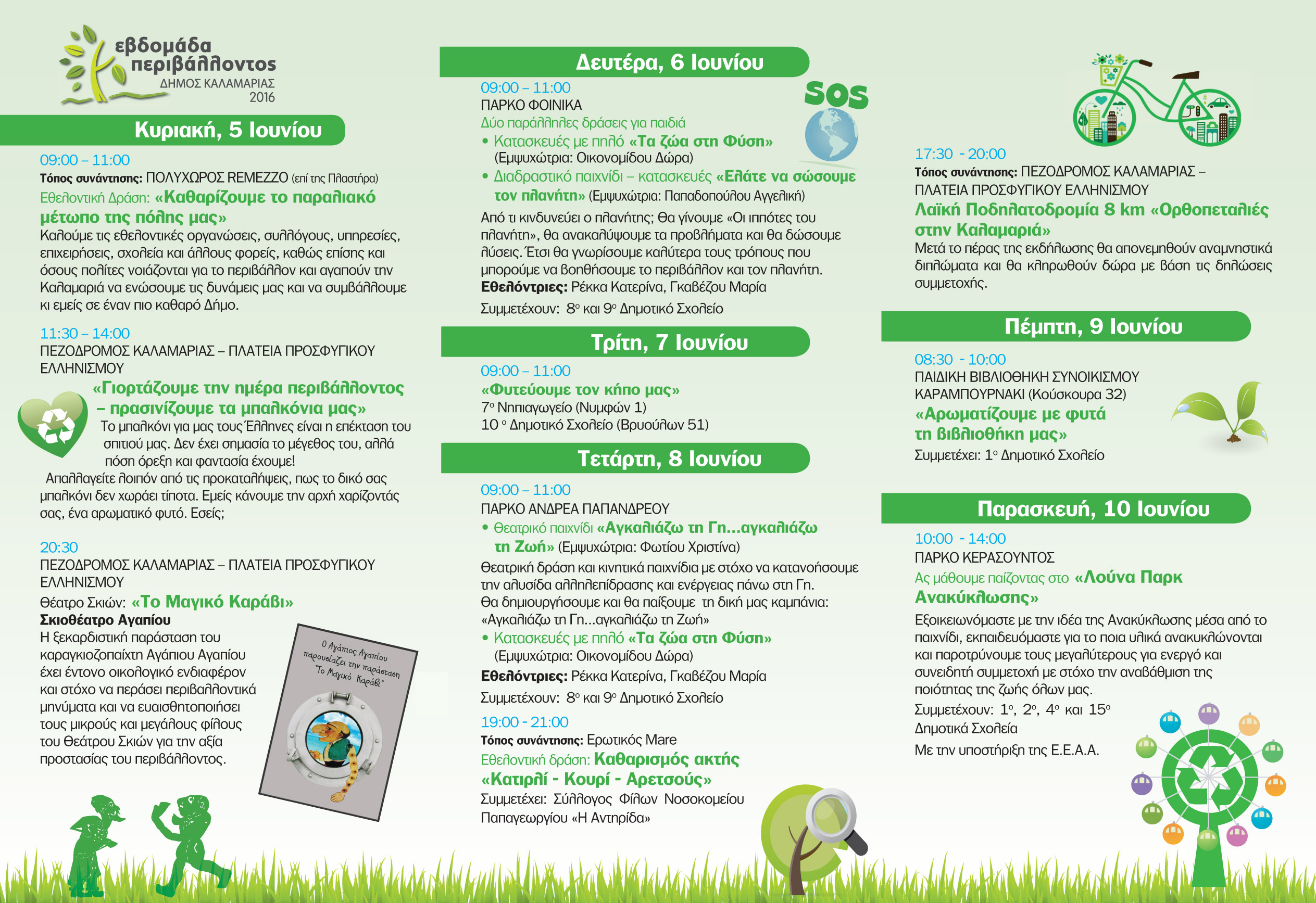 Ο Δήμος Καλαμαριάς στέλνει ένα μήνυμα δράσης για το Περιβάλλον, συμμετέχοντας για άλλη μία χρονιά στον εορτασμό με τη διοργάνωση της «Εβδομάδας Περιβάλλοντος 2016».